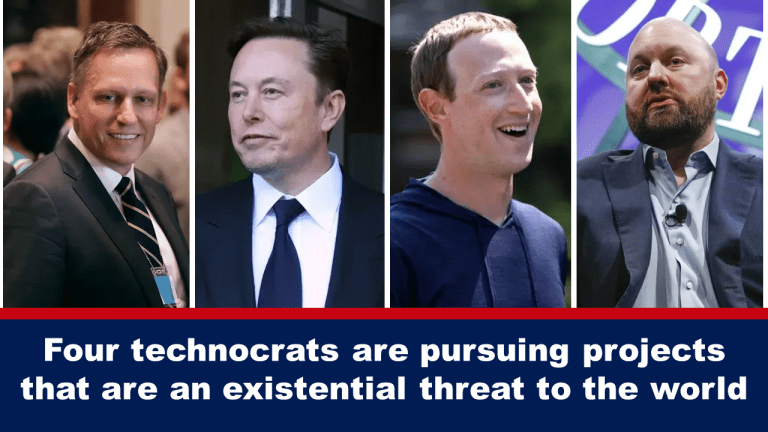 Четыре влиятельных миллиардера – Питер Тиль, Илон Маск, Марк Цукерберг и Марк Андриссен – создают мир, в котором «ничто не является правдой и все является зрелищем». Вместе у них есть четыре проекта для реализации своих идей: Web3, криптовалюта, межпланетная колонизация и трансгуманизм. Эти четыре проекта вместе с искусственным интеллектом представляют собой экзистенциальную угрозу миру.