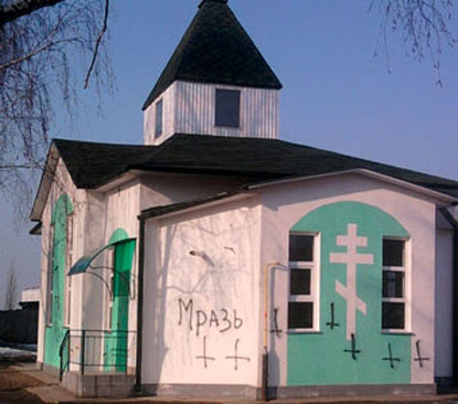 Накануне Пасхи 2012 года болящий сатанист осквернил храм имени Сергея Радонежского в Мозыре (Беларусь)